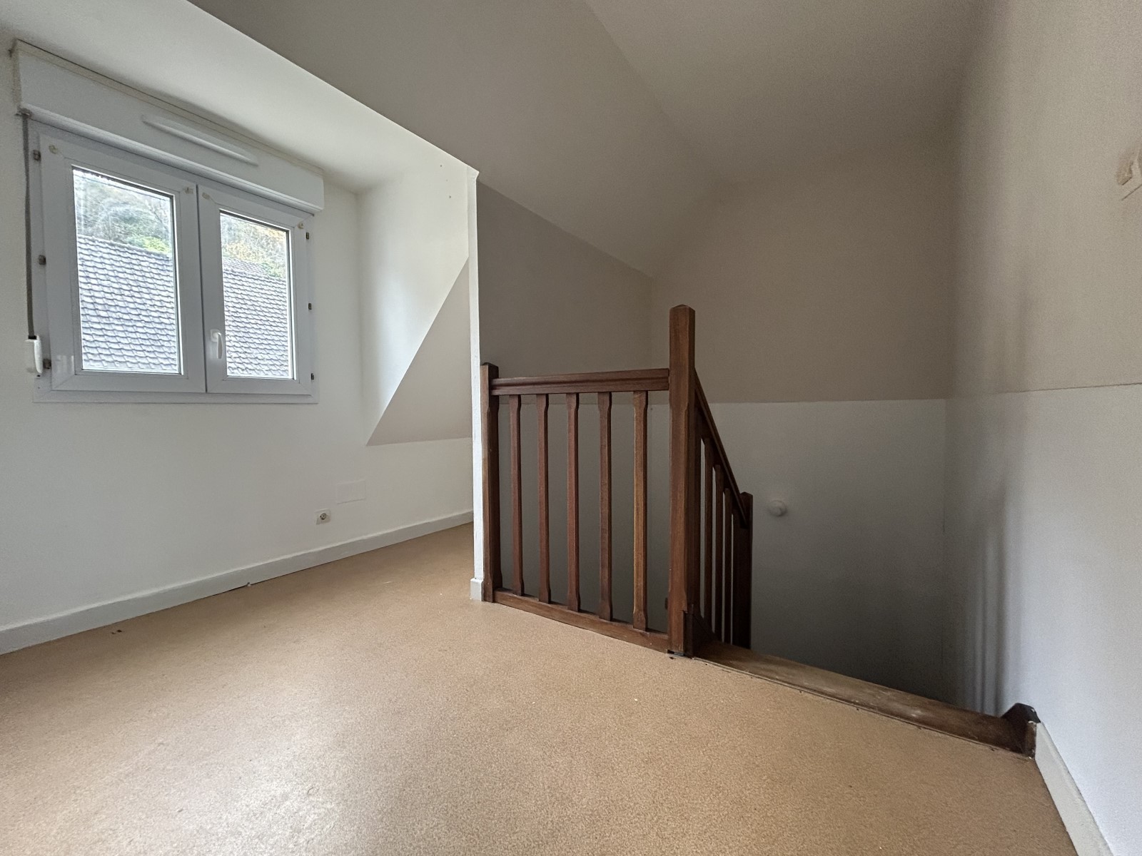 À l'étage, un palier dessert deux belles chambres mansardées.