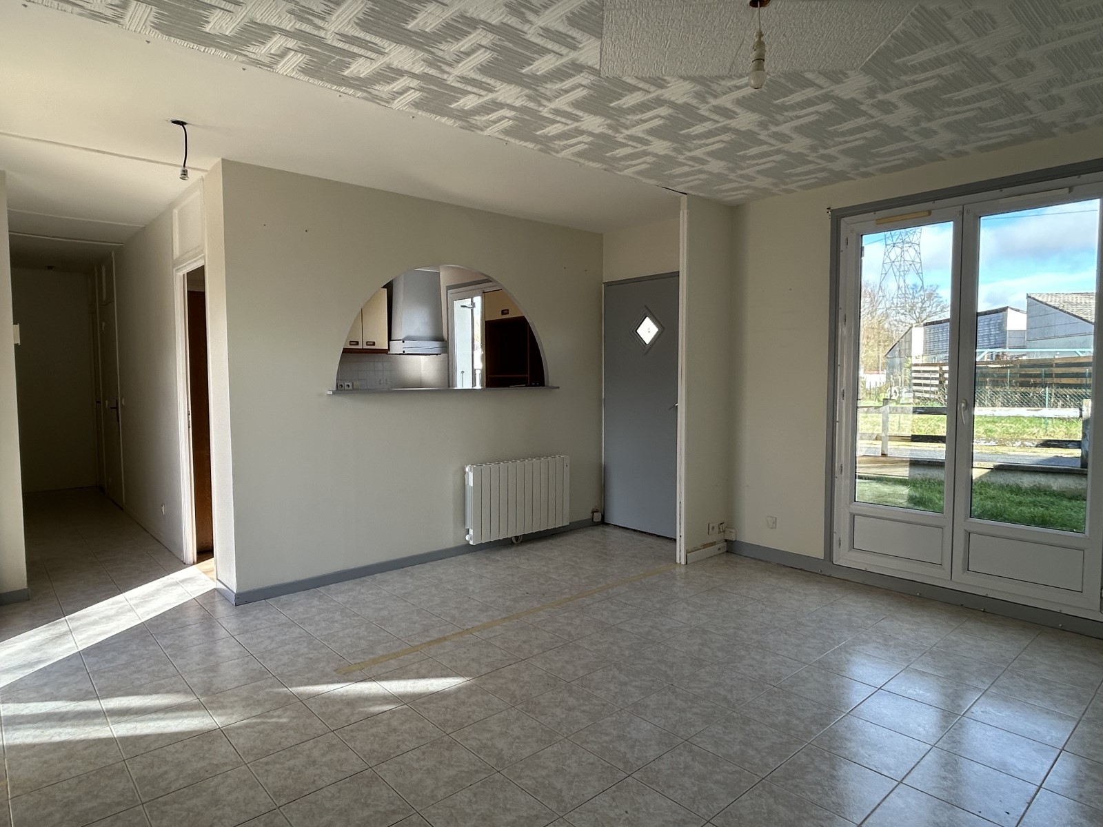 Dès l’entrée, vous découvrirez le séjour avec accès direct sur la terrasse et le jardin, une cuisine aménagée, un couloir desservant deux chambres, une salle de bains, des WC indépendants, un cellier et un débarras.