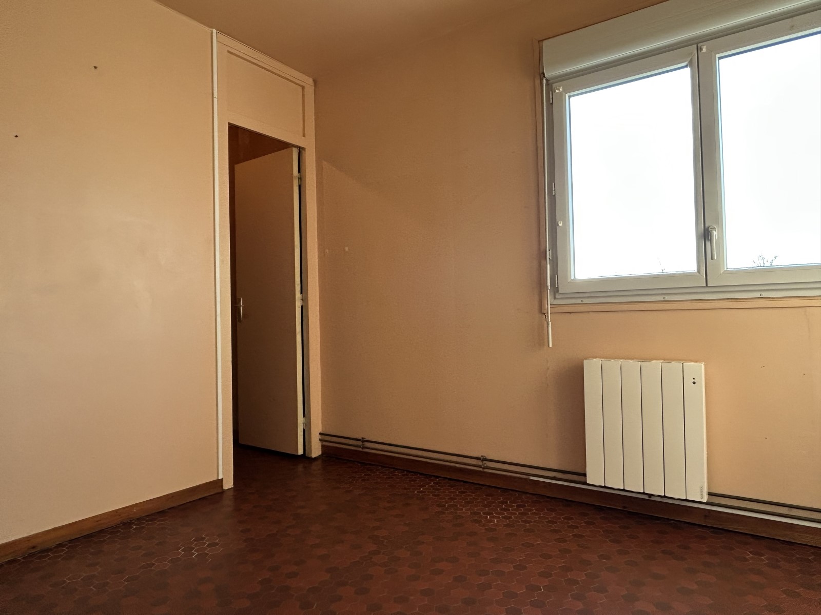 Elle comprend une entrée, un séjour lumineux ouvert sur l’extérieur, une cuisine indépendante avec arrière-cuisine, un couloir desservant deux chambres dont une avec placard, une salle d’eau et des WC séparés. Chauffage électrique.